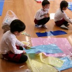 2月の生活発表会向けて、年長児は友だちと相談しながら自分たちで活動を進めているところです。