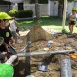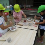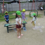 砂場で水を流してダイナミックに遊んだり、シャボン玉や色水づくりをして