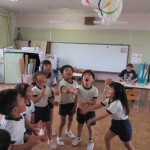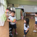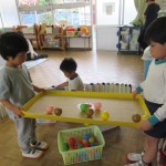 色々なところをめがけて入れ合いっこ。みんな遊びの天才です。