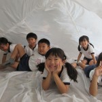 サーキュレーターで風を送り込むと中に入れるので、こどもたちは大喜び!!