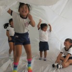 これは、ポリ袋をつないで作った「ドーム型のバルーン」です。