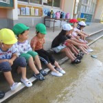 みんなでミストシャワー。歓声があがります。『気持ちいい~』