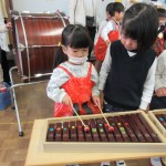見せ合いっこの後に、年長さんに教えてもらいながら一緒に演奏しました。