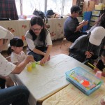 お家の人と一緒に活動することで、安心した表情で活動していました。