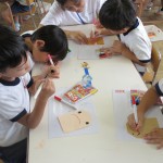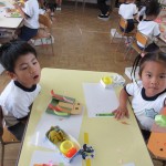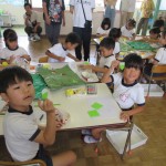 5歳児はグループに分かれてどんぐりの木を作りました。
