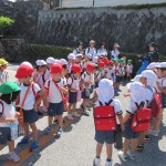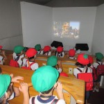 美味しくお弁当をいただいた後は、年長児と年中児は歩いて“自然資料館”に移動しました。