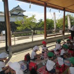 その後お天気が良かったので、お城が見える二の丸公園でお楽しみのお弁当とおやつタイム♪