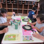 9月のうさちゃんクラブは、絵の具を使って、ホットケーキを描きました。