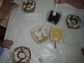 ドーナツ体操をしたり、ドーナツにトッピングをして