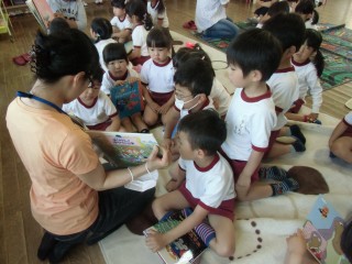 図書クラブの人が、子ども達の選んだ絵本を読んでくれます。