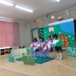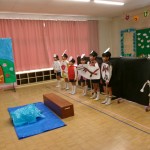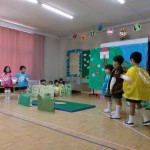 ペープサートと劇の2チームに分かれて取り組みました。ストーリーも自分たちで考え、楽しいお話ができました。最後の歌は「さすが年長さん!」とみんなが思うほど素敵でした☆