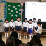 2月20日に生活発表会をしました。当日までは欠席の子がいて全員そろうことがなかったのですが、当日は全員出席!!みんなのがんばりを保護者の方に見てもらうことができました。