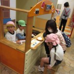 お店屋さんが並ぶコーナーでは、お仕事を体験したり、お店屋さんとお客さんになってやりとりを楽しんだりしていました。