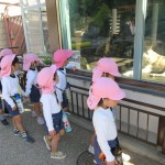 そして到着!この日は遠足の子どもたちも多く、迷子にならないように前のお友達について、しっかりと歩きました。5歳児が3歳児の手をつないで、4歳児は4歳児同士で手をつないで歩きました。