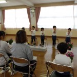 今日は年中児の修業式でした。年長さんのようにかっこよく修業証書を園長先生からもらって、「大きくなったら・・・」ますます大はりきりの年中さんでした(^^♪年長さんでもその調子でがんばってね!!