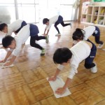 今日はみんなでピッカピカ大作戦!!1年間ありがとうの気持ちを込めて大掃除をしました。大掃除の後は、ピッカピカになったお部屋で楽しいゲーム遊び(^^♪じゃんけん列車やはんかち落としなどを楽しみました。そして、今日はみんなで何をしようか・・・やっぱりドッヂボールが大好きな子ども達でした♡