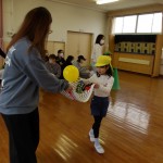 今日は、PTA主催お別れ会でした。風船運びやハムスター競争、当てっこゲームなど、楽しい遊びが盛りだくさん!!おうちの人と一緒に遊べて、みんなの笑顔がはじけていました。最後にはプレゼントももらって大喜びの子ども達でした。