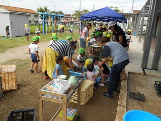 9月7日、久しぶりに、なかよし先生(保護者)と一緒に遊びました。暑い日でしたが、たくさんの方が参加してくださいました。なかよし先生達のお蔭で遊びが盛り上がり大喜びの子ども達でした。ありがとうございました!
