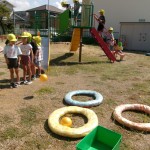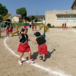 運動会に向けても、可愛い衣装をもらって大喜び!八木北幼稚園の園庭では、今日も可愛い笑顔がはじけていました(*^-^*)