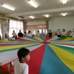 今日は保育参観日でした。今日は一日登園時からおうちの人と一緒に過ごすことが出来て大喜びの子ども達(^^♪いつもの朝の用意も見てもらって2階へ。まずはリトミック♪保護者の方にも一緒に体験してもらいました。そしてダンスやリズム遊び、触れ合い遊び等をして、最後はバルーンも一緒に楽しみました!たくさんのニコニコ笑顔がはじけるとっても素敵な時間となりました。ご参加いただいた皆様ありがとうございました!!
