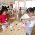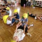 今日も暑いのでお茶をたくさん飲んで、熱中症予防に気を付けながら元気いっぱい遊びました。お部屋でのリトミック、年齢別保育(フレンドタイム)…その後、外でも思う存分体を動かして活動している子ども達。2学期も楽しいことがいっぱいです!みんなで一緒に楽しみたいと思います(*^-^*)