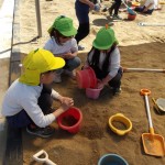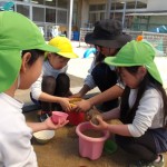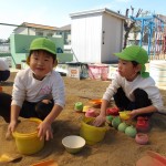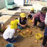 そしてますます強くなった腕でドッヂボールを楽しみ、午後からは砂場でカッチカチの泥団子づくりやアイスクリーム屋さんをして遊びました。