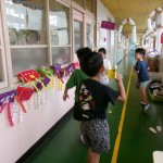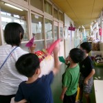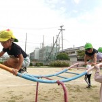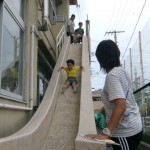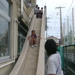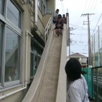 午後からは年長児のみ非常滑り台を使った避難訓練をしました。来週は年中児も滑り台を使った訓練をします。今日は年長さんにやりかたを見せてもらいました。