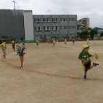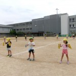 そして小学校の運動場でもダンスやかけっこをしました。広い運動場にキラキラ笑顔がはじけていました!(^^)!