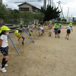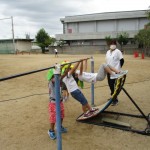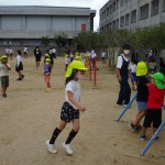10月5日 小学校運動場で練習したね★1年生のダンスを見せてもらったね!
