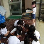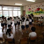 みんなで身体2測定をしました!年長児は年中児に、見本を見せてあげたり、教えてあげたり、優しく関わる姿が見られました。