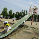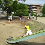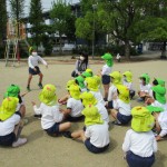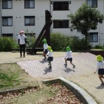 地域の公園へ行きました。公園への行き帰りの道では、交通安全を意識して、年長児は年中児を優しくリードしながら歩いていました!「下池田公園」では、遊具で遊んだり、鬼ごっこや長縄をしたり、虫探しをしたりしました!春の自然を感じながら、地域の公園で遊ばせていただいたことで、地域の良さを知り、地域を愛する気持ちにもつながりました!