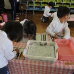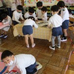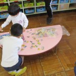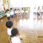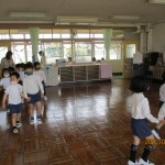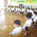 幼稚園の中には、どんな部屋があるかな?どんな楽しい場所があるのかな?年長児が年中児をリードしながら、幼稚園を探検しました!年長児は今日から弁当も始まりました!
