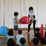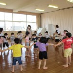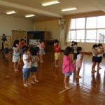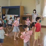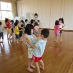 遊戯室で、心も体も動かして、みんなで楽しく「元気っ子タイム」をしました!歌や体操、ふれあい遊び、ペア遊び、フープ競争などをしました!