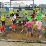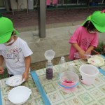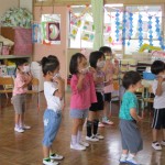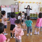 今日は内科健診もありました!またフレンドタイムでは、年長児は個人絵の具や「歌のアルバム」などをしました!年中児は、楽器遊びや、ふれあい遊びなどをしました!園庭での主体的な遊びでは、水を使ってダイナミックに遊んでいます!