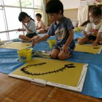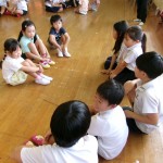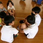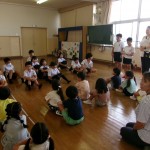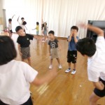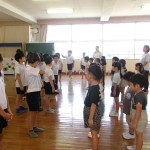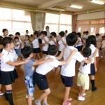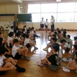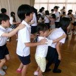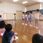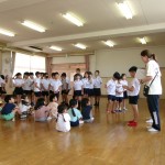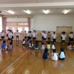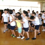 今日は3年生との交流がありました。グループに分かれてまずは自己紹介、その後、ラジオ体操を教えてもらいました。少し緊張する様子や真剣に聞こうとする姿、おにいちゃんおねえちゃんが来てくれて嬉しくて笑顔いっぱいの姿も見られました。その後、みんなで一緒にじゃんけん列車をしました。3年生に優しく手を引いてもらって緊張もほぐれてきたところで楽しいダンスをしました。3年生の中にも幼稚園の時に踊ったことを覚えている子がいて「これ知ってる!」「幼稚園の時おどった!」という声が。帰り際にも「また遊びに来たい!」「ロング休憩遊びにきていい?」という子もいて、幼稚園の頃を懐かしんでいる3年生さんでした。