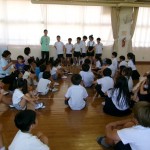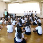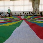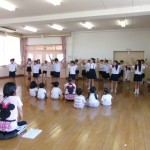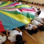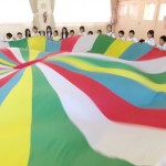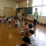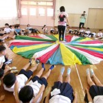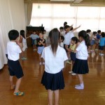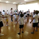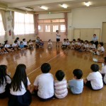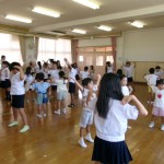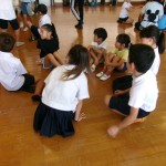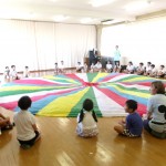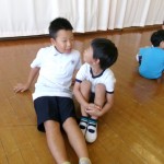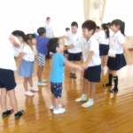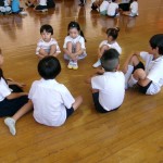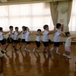 今日は3年2組さんとの交流でした。指先までピシッと伸びたきれいなラジオ体操を見せてもらってからポイントを教えてもらいました。グループに分かれて「○○ちゃんは足を伸ばして曲げてが上手やなー」「ジャンプかっこいいよ」などと3年生が園児一人一人に声をかけてくれていてびっくり!園児もやる気満々で頑張っていました。その後、じゃんけん列車やバルーンをして一緒に楽しい時間を過ごしました。明日は3組さんが来てくれます。お楽しみに☆