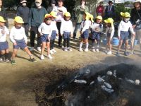 小学校の運動場で地域の方にお世話になり、やきいもパーティをしました!