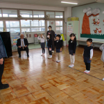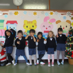 今日は2学期の終業式がありました。園長先生からは、冬休みの過ごし方、「早寝・早起き・朝ごはん」で元気に過ごすことや、お家のお手伝いをすることなどのお話がありました。2学期、日々の園生活や行事を通じて、心も体の大きく成長しました。1月8日には、みんな元気に登園してくださいね。保護者の皆さま、地域の皆さま、幼稚園教育にご理解ご協力をありがとうございました。