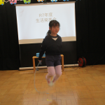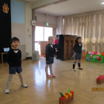 13日、生活発表会を行いました。“やってみよう!”では、年長児は縄跳びを、年中児はミニサーキットと大縄跳びをしました。毎日練習してできるようになった姿を見ていただきました。