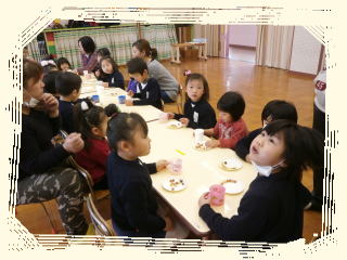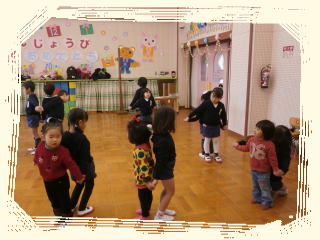 桃の節句に、わくわくダック(3歳児体験保育)の友達と一緒にひな祭り会をしました。