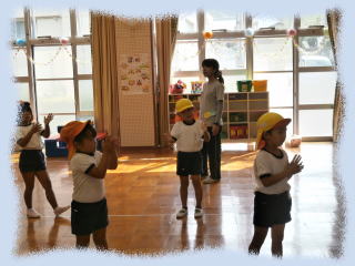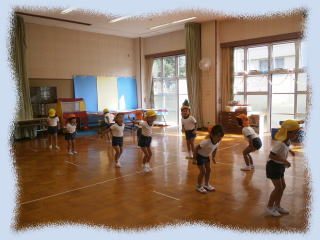 9月29日(日)は、待ちに待った運動会。 少しづつ練習を始めています。リズム表現は、子どもたちが興味をもっている音楽で、振付も子ども達の意見やアイディアを盛り込みながら作っています。