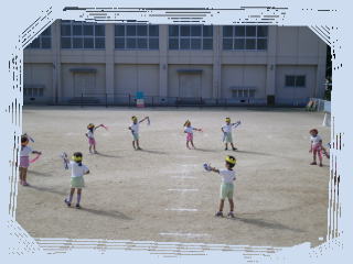 広い小学校の校庭での練習。